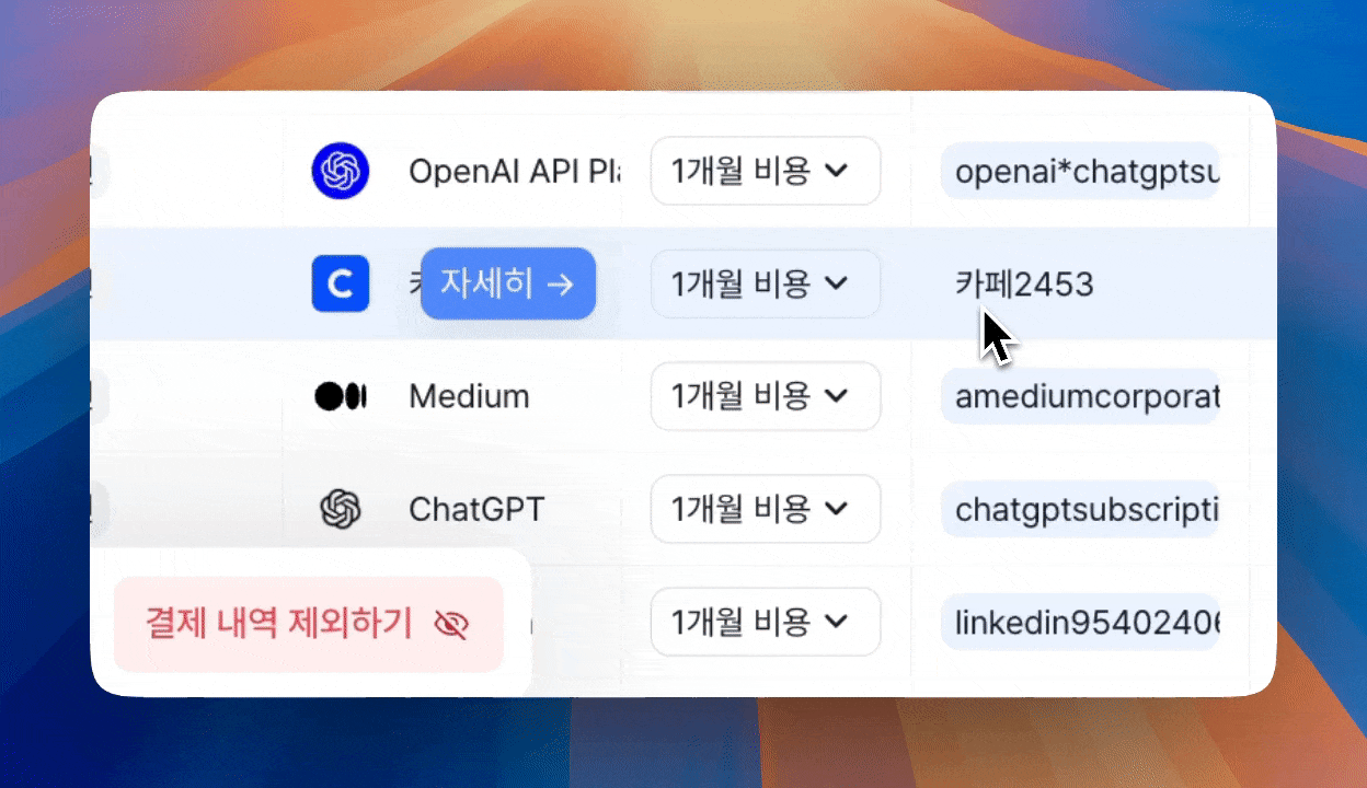 SaaS 결제 내역에서 결제 건마다 결제명과 승인번호를 추가하였습니다. 결제명을 통해 어떤 기준으로 SaaS 결제에 추가가 되었는지 확인이 가능하고, 승인 번호를 통해 중복 결제 확인 및 검색이 쉬워졌습니다.