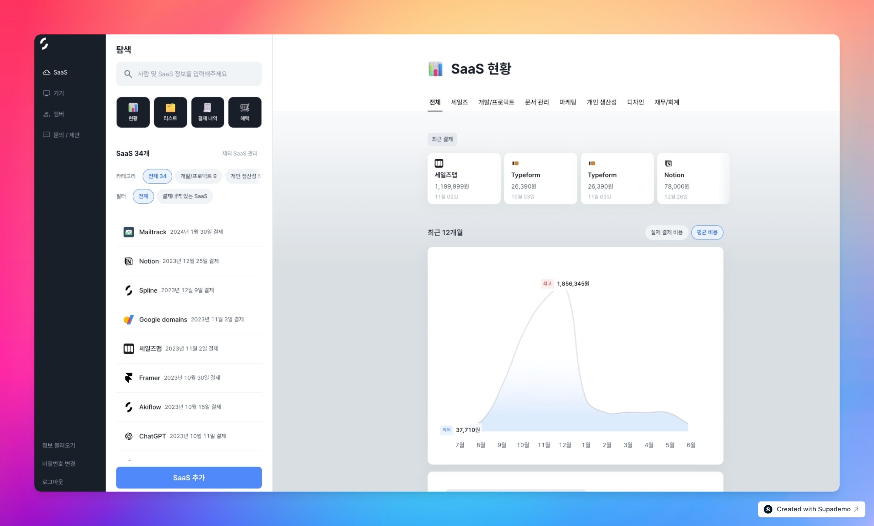 SaaS 관리 페이지 업데이트